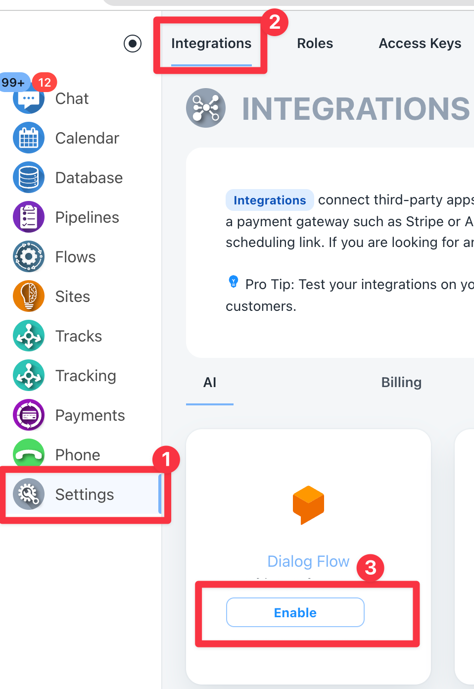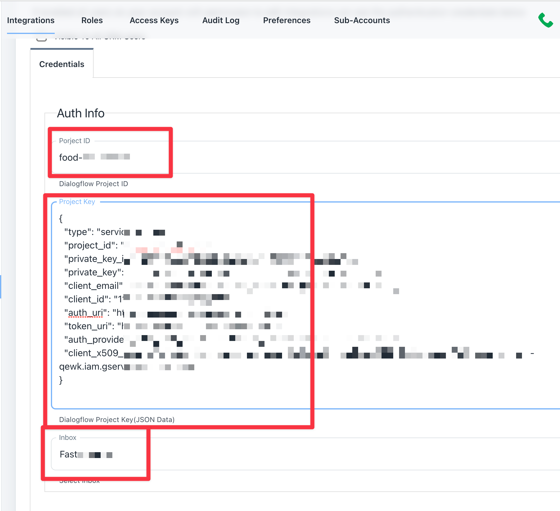 现在您已经在 DialogFlow 中创建了一个新的 Chatbot 和一个用于连接到该 Chatbot 的 ServiceUser,您需要启用 DialogFlow Chatbot 集成。 为此,我们需要知道上一步中的 Google“项目 ID”和“JSON”文件的内容。