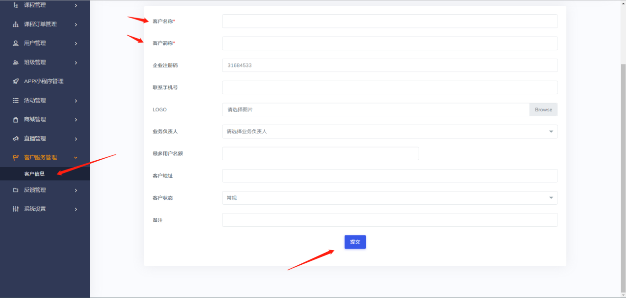 - 客户简称:填写机构简称,会显示在学生侧已实名处