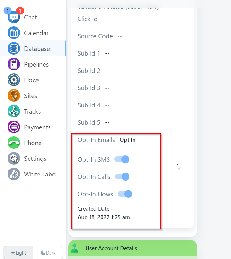 4. 在详细信息下,您可以查看此联系人的所选择的Opt-in状态