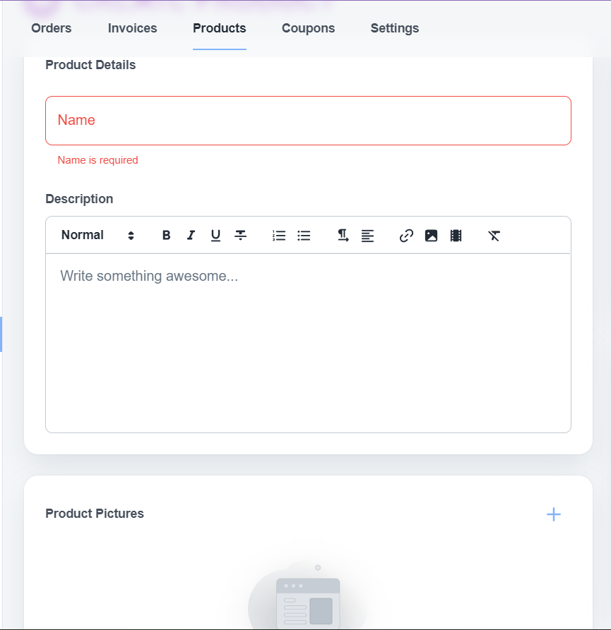 请单击“添加产品”按钮创建产品。