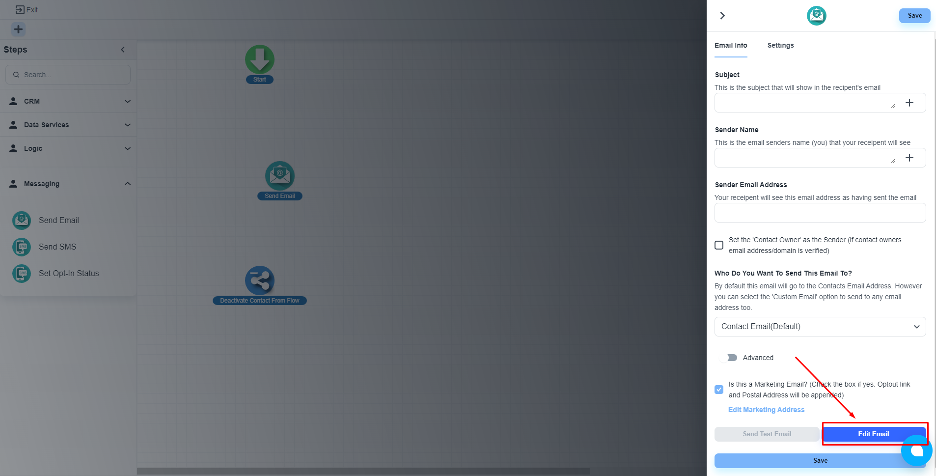 在“消息”部分下,您将获得“发送电子邮件”步骤