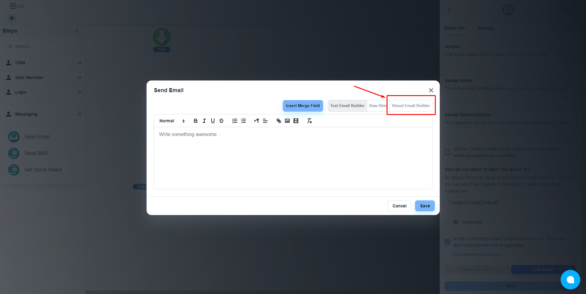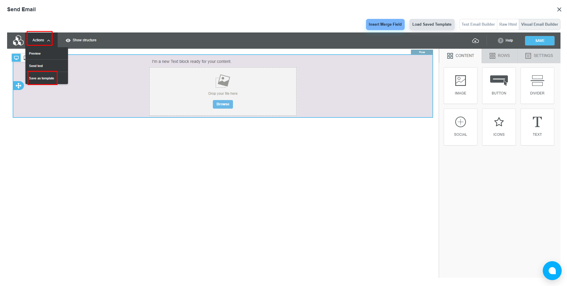 系统将加载电子邮件生成器。 单击“Visual Email Builder”按钮
