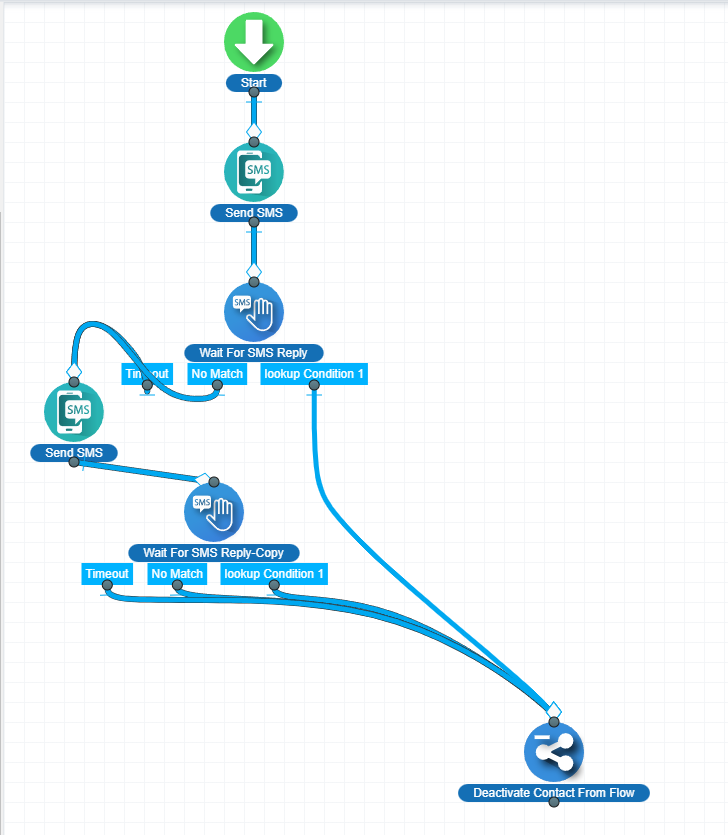 根据我们的要求,重复设置“发送短信”和“等待短信回复”步骤