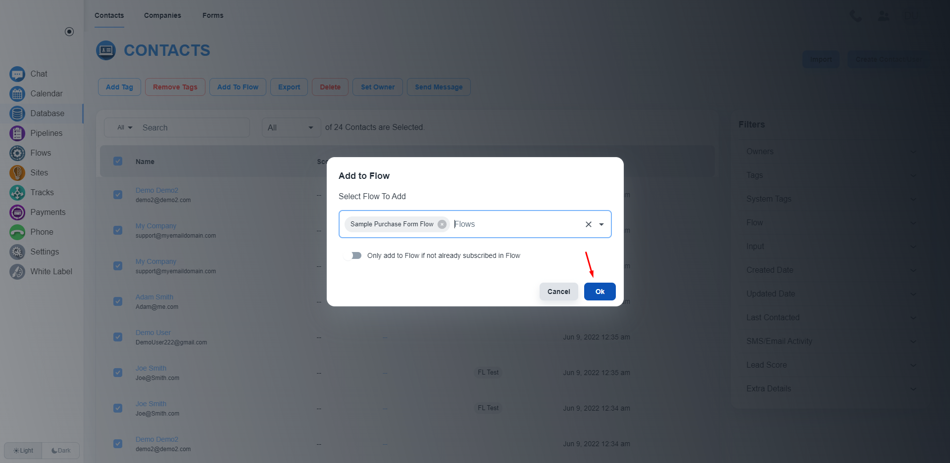 选择所有联系人后,单击“添加到流程”按钮将所有联系人添加到流程中