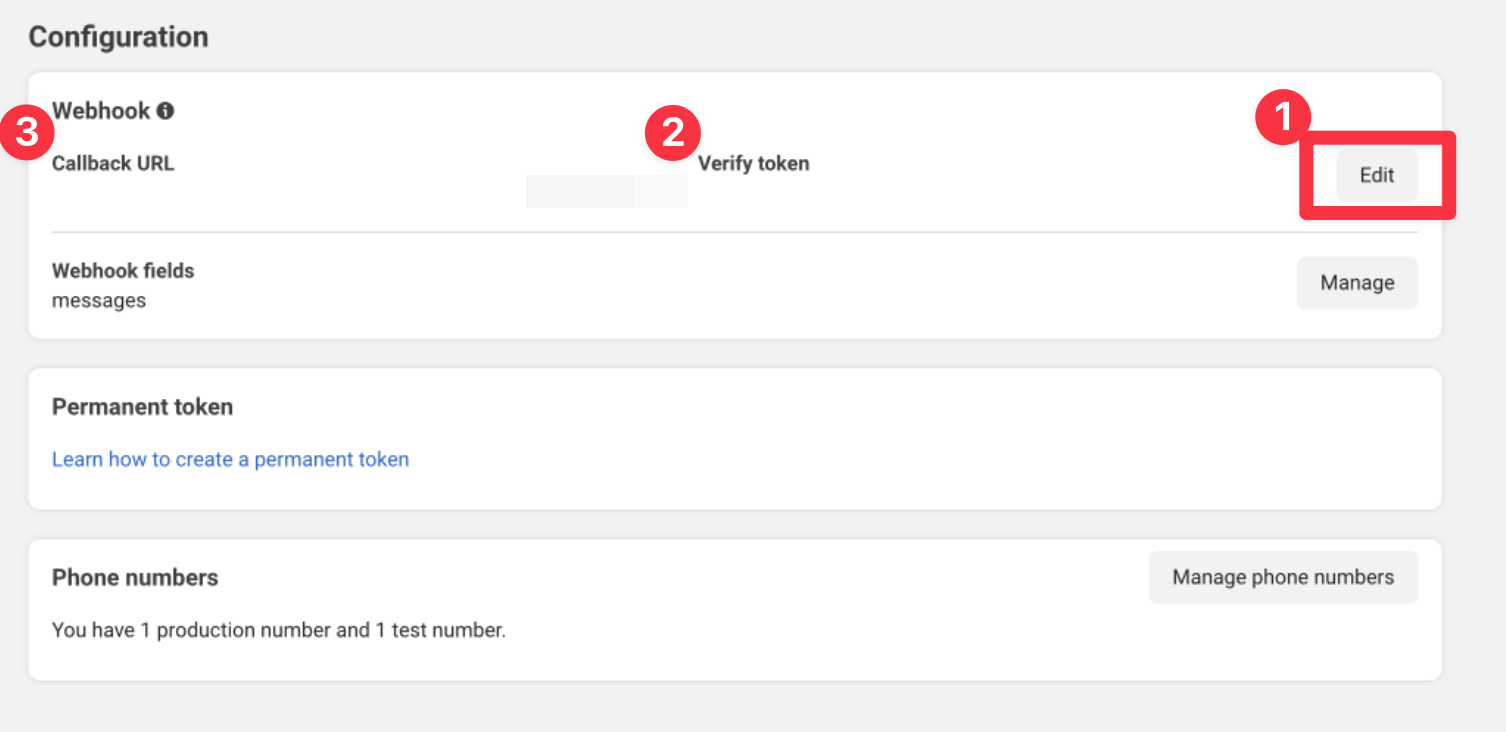 ℹ️ Meta 只允许每个 Meta Developer App 设置一个回调Webhook URL。 如果您拥有或计划拥有多个 WhatsApp 收件箱,它们都将使用相同的 Webhook URL,并且消息将被路由到正确的收件箱