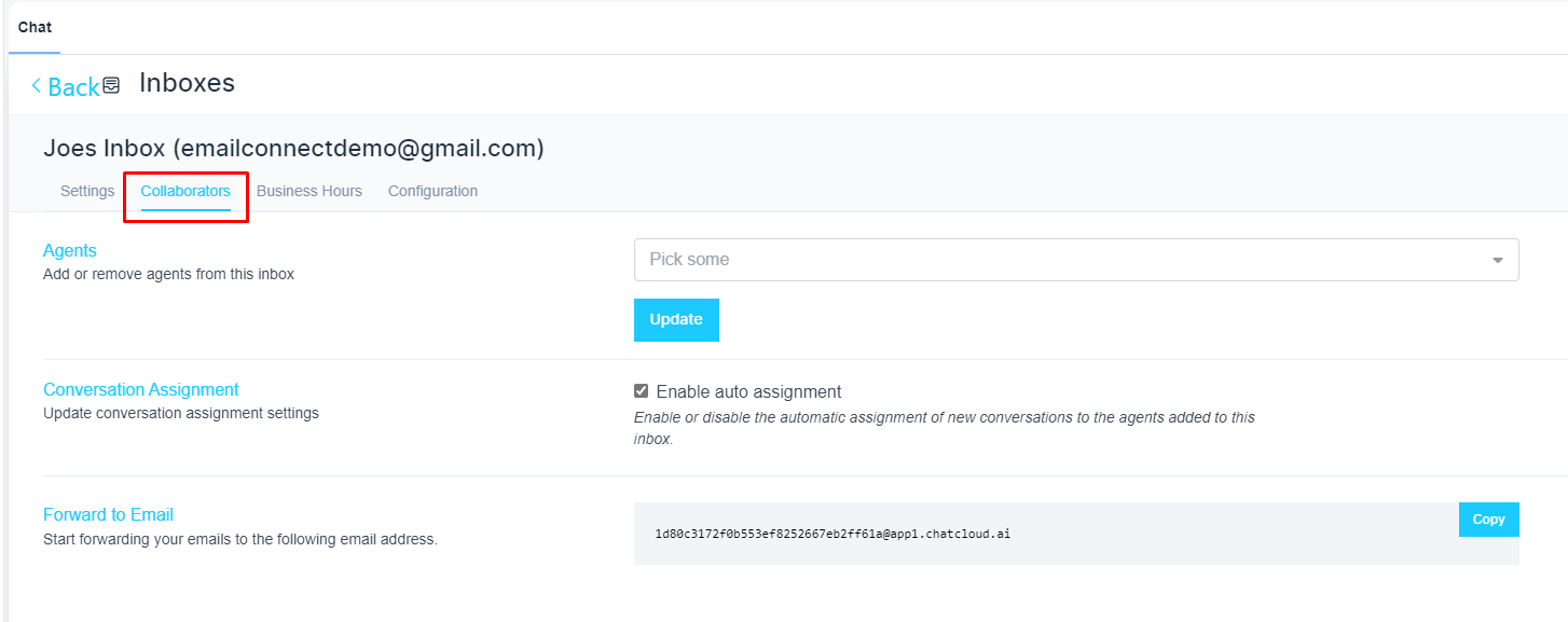 在“协作”选项卡下,您可以为您的电子邮件收件箱分配代理
