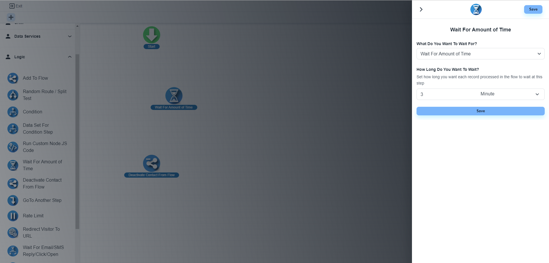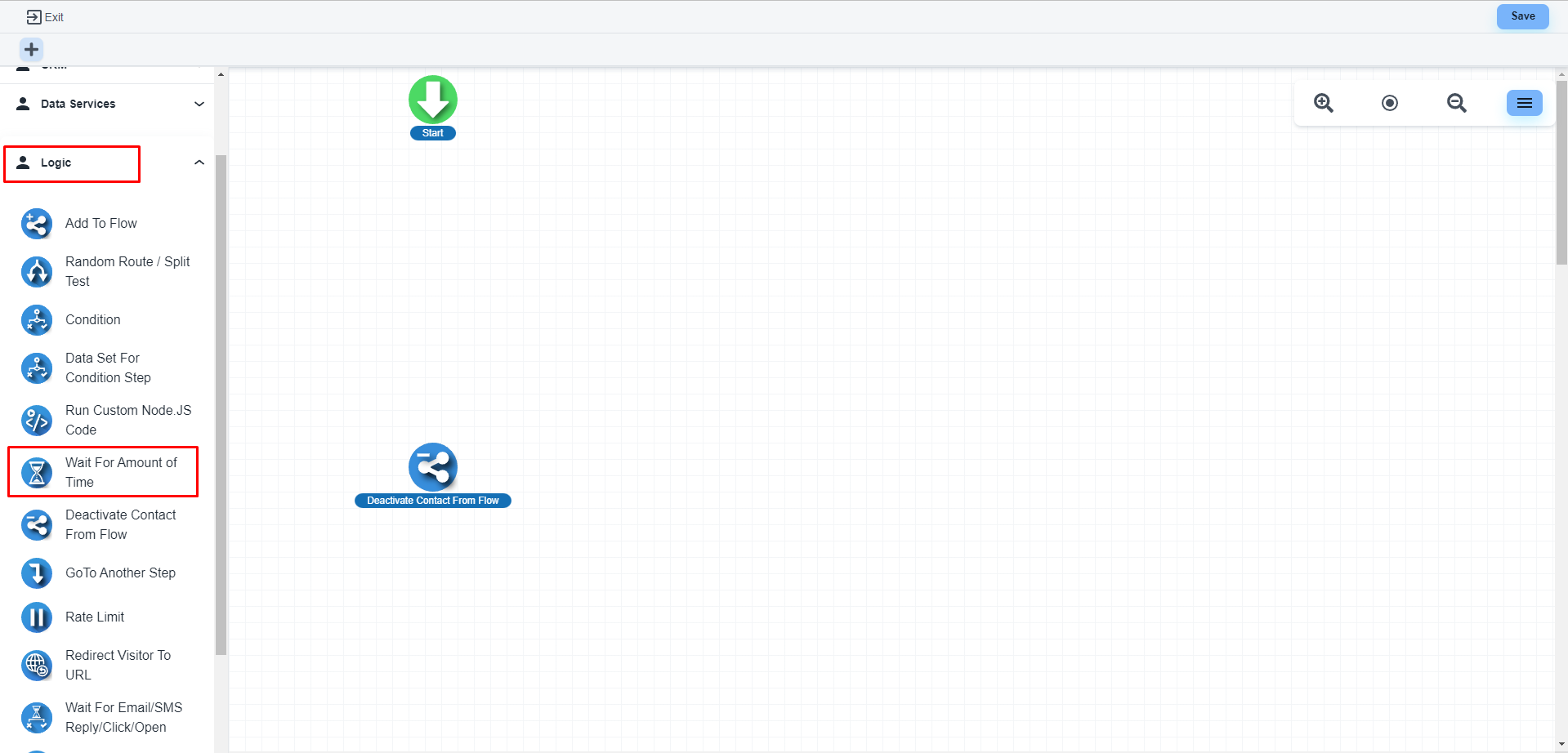 在“逻辑”部分下,您将看到“等待时间”步骤。 此步骤支持为延时发送创建时间间隔。
