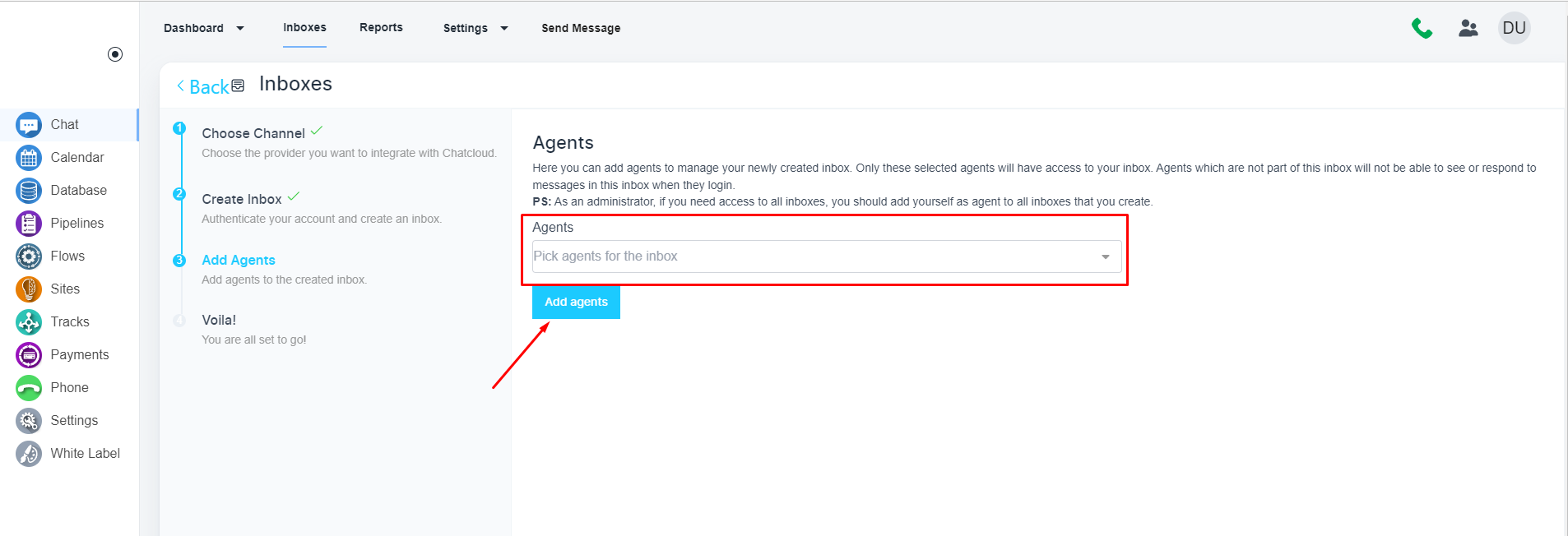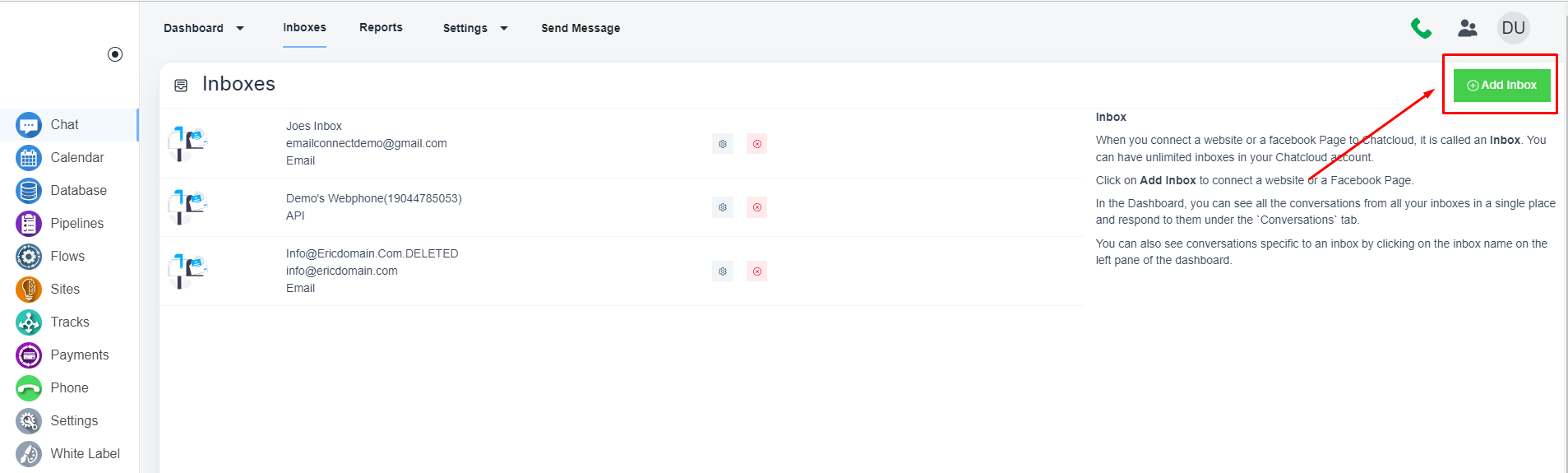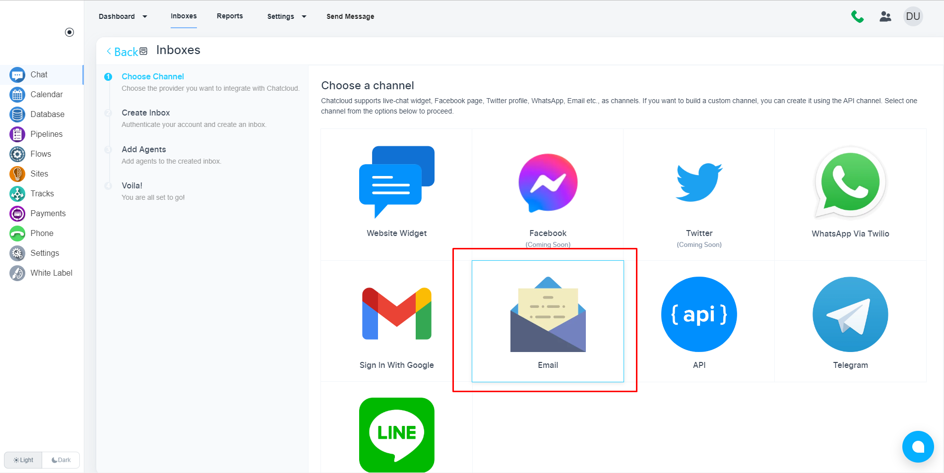 请导航到左侧菜单上的“聊天”。 页面打开后,请单击顶部菜单栏上的“收件箱”。