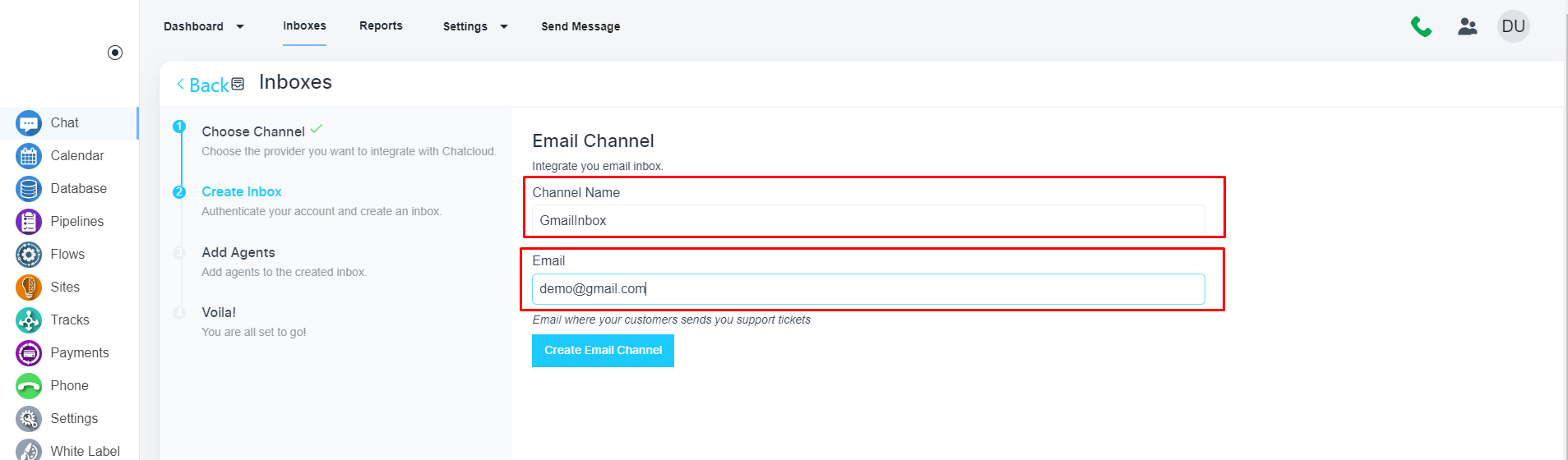 为 Gmail 帐户创建聊天收件箱的步骤