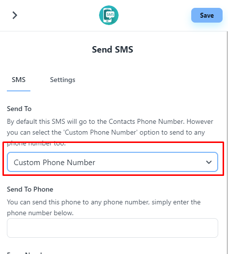 您可以选择“自定义电话号码”选项向任何号码发送通知