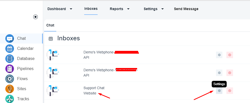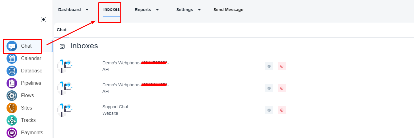 如果您已有网站组件收件箱,请导航到左侧菜单栏上的“聊天”图标。 加载页面后,单击顶部菜单栏上的“收件箱”菜单。