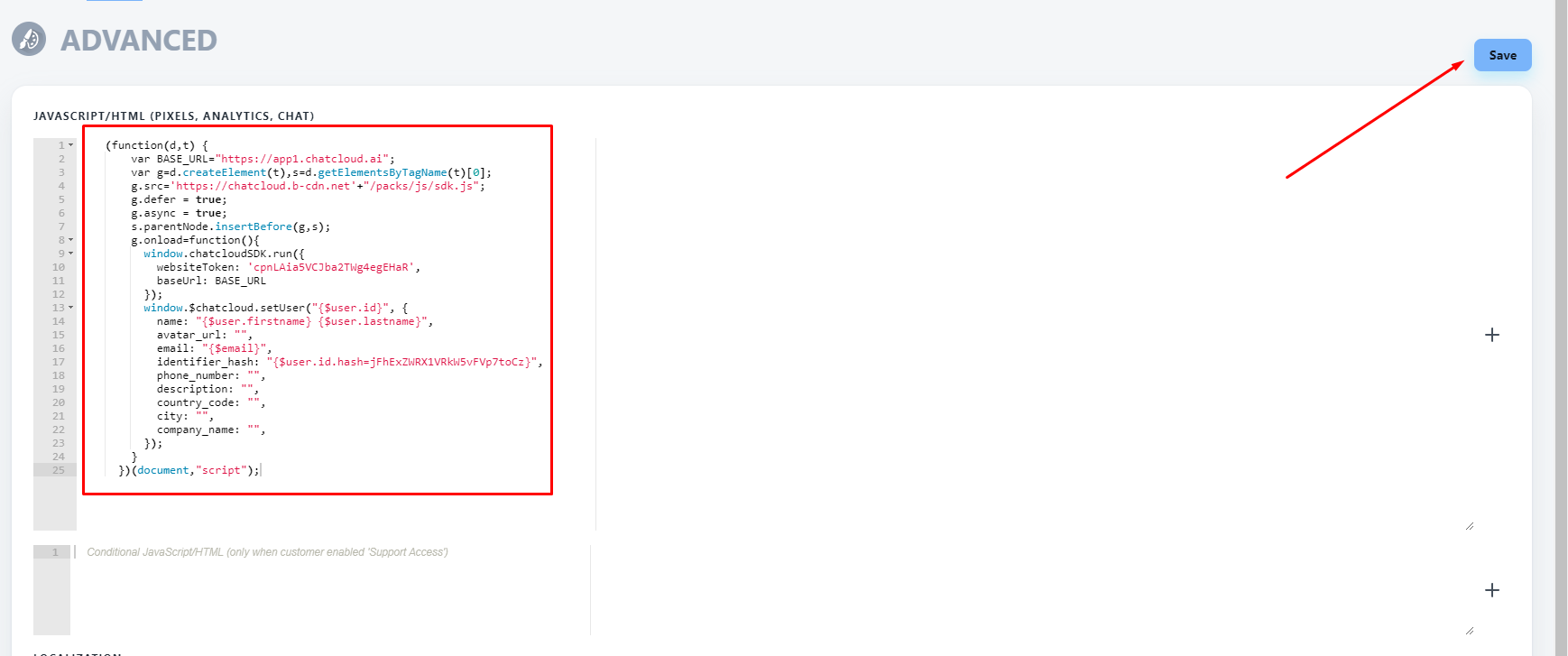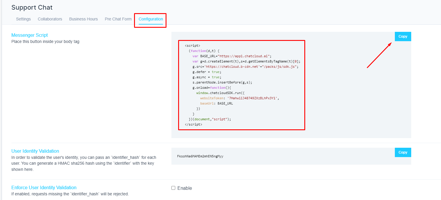 在“配置”选项卡下,您可以看到脚本代码。 请复制该代码。