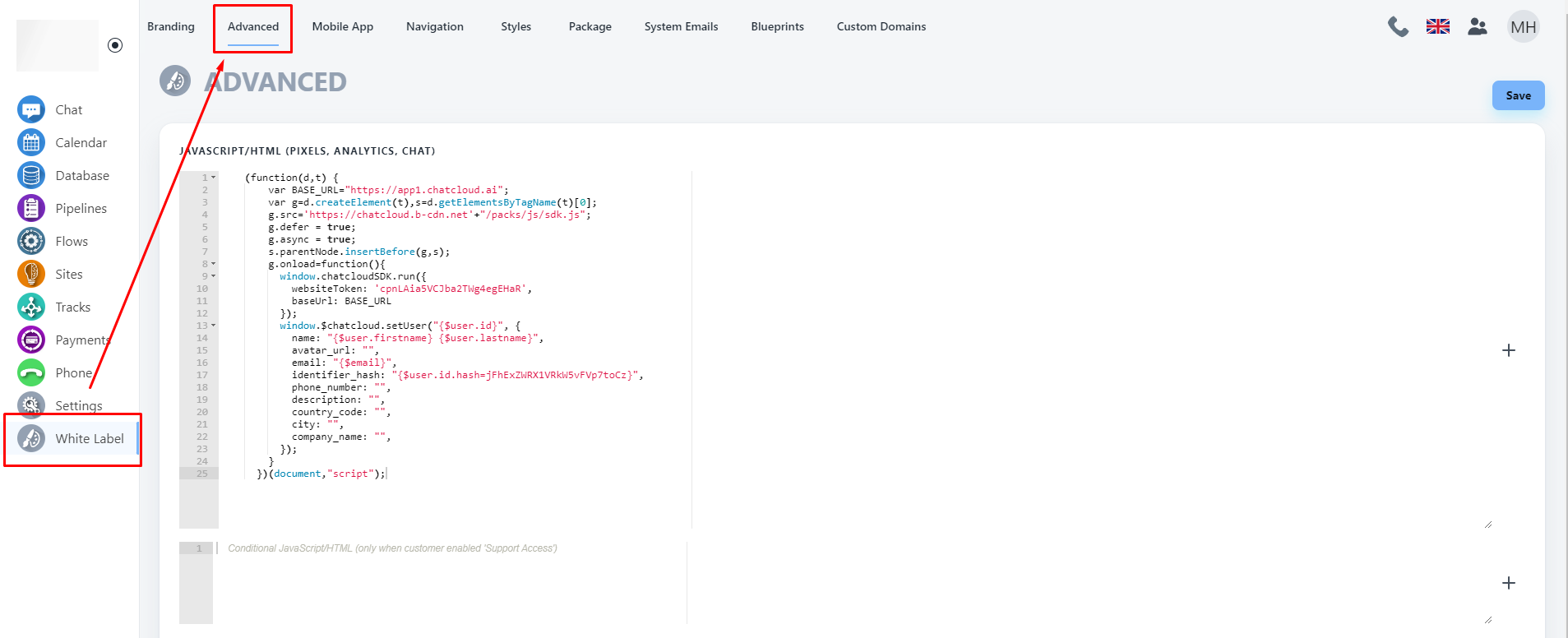 请导航到左侧菜单栏上的“设置”,然后单击顶部菜单栏上的“高级”选项卡。