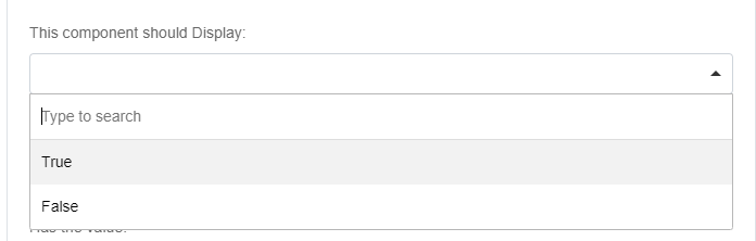 The component should display - 可以选择 True/False。 如果您选择 true,则当条件为 true 时将显示该字段