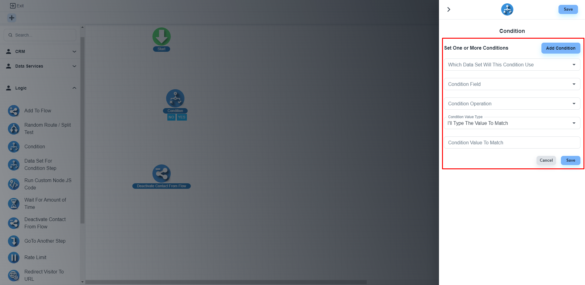在流程构建器中,我们在逻辑部分下有“条件”步骤。 此步骤将用于获取用户的输入。