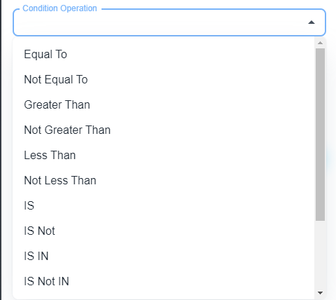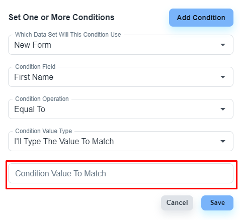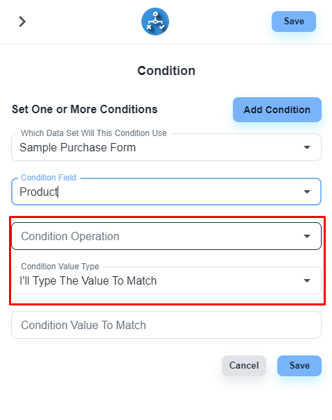 在“条件”字段下拉列表中,您可以访问表单上的所有可用字段。