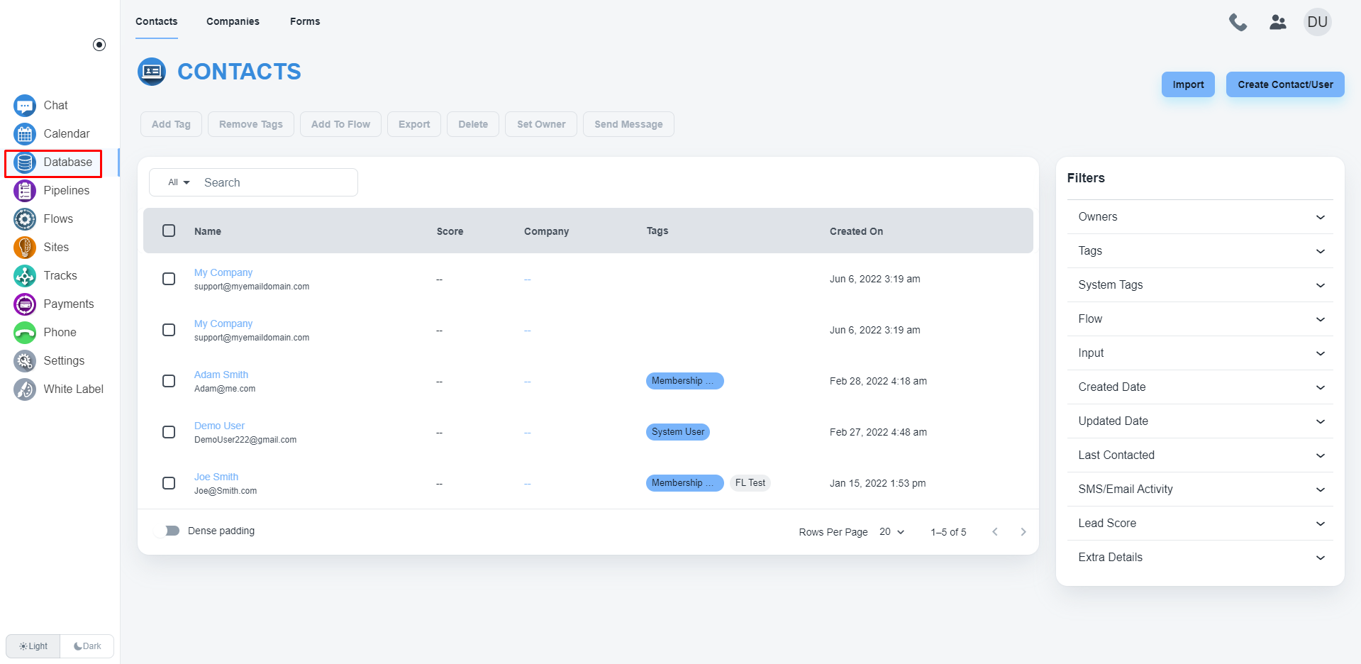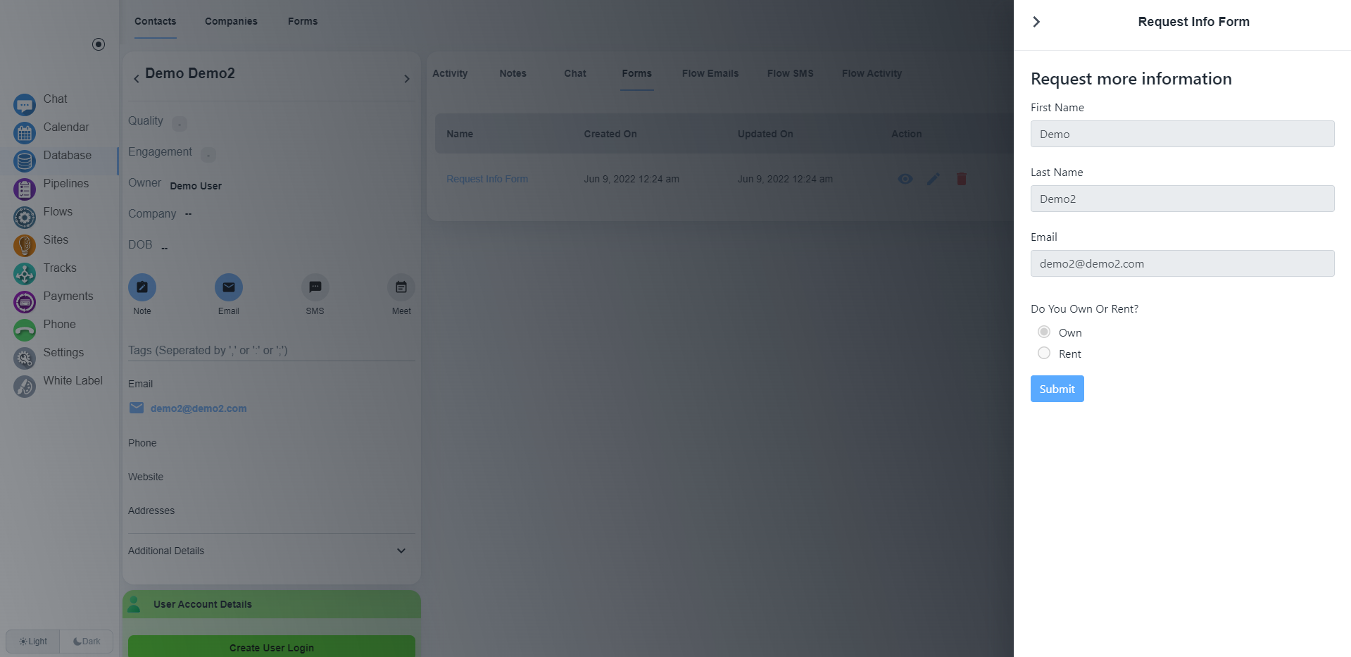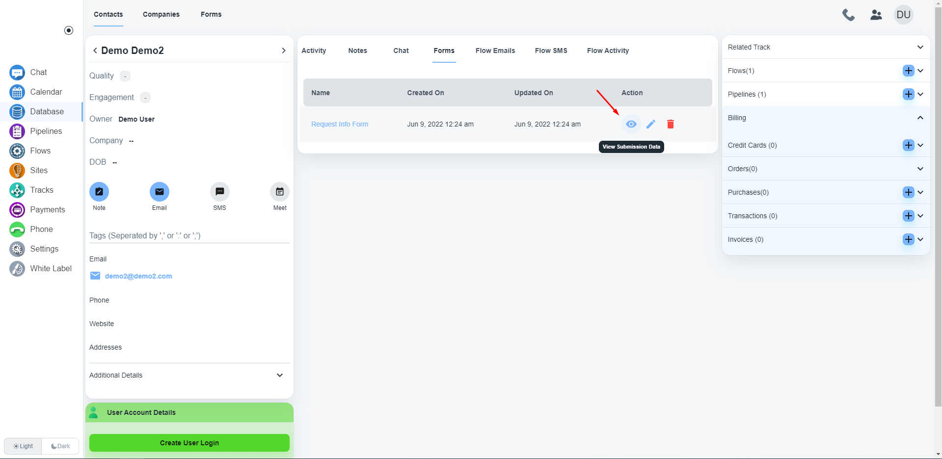 打开该联系人的联系人卡片后,您将在页面中间看到“表单”选项卡。 在表单选项卡下,您将看到该联系人的所有提交表单。